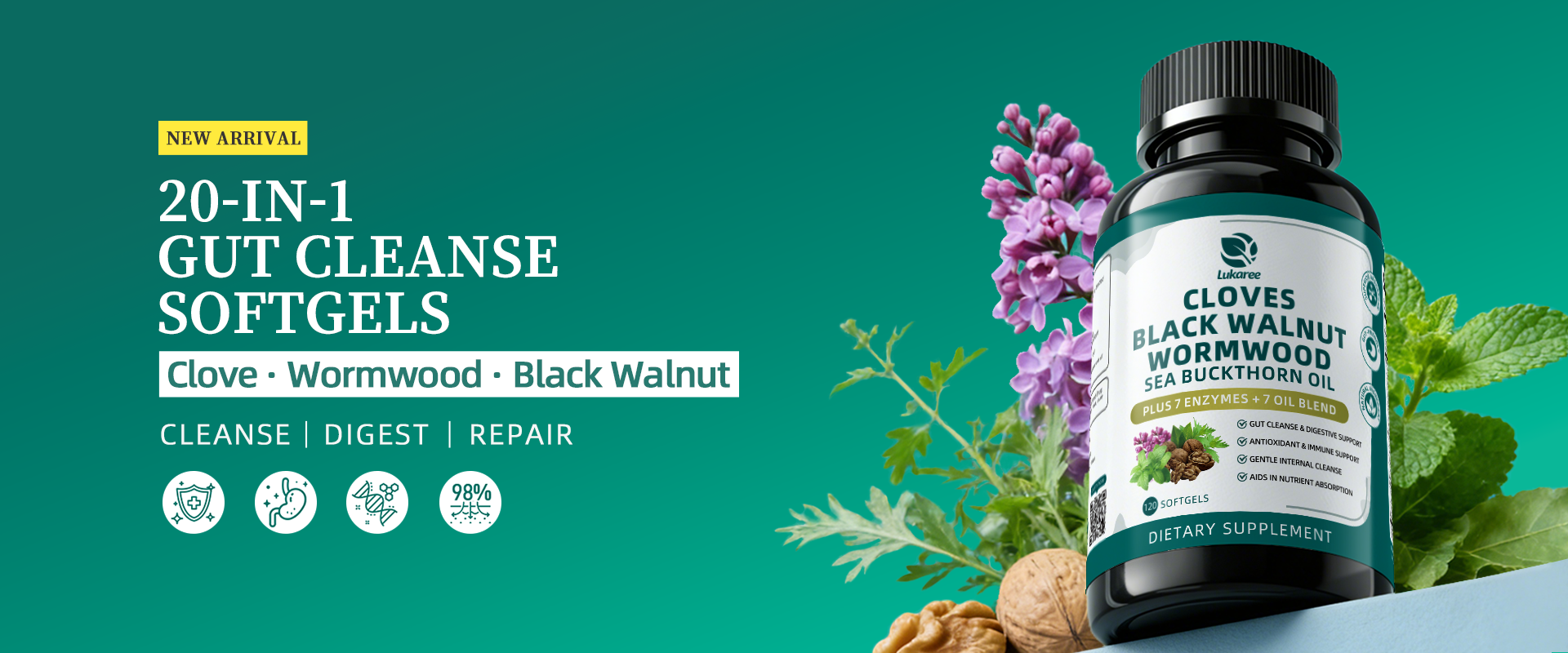 Detox & CleanseLukaree Black Walnut Wormwood Tincture with Clove & Garlic – Natural Gut Cleanse & Digestive Support