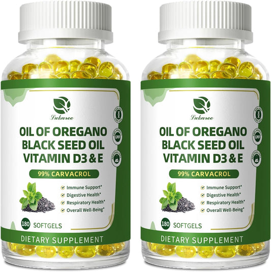 (2 Pack)Pure Oregano Oil Softgels, Oil of Oregano with Black Seed Oil, Garlic Oil, Vitamin D3 E for Immune Heart Digestive Support - Antioxidant Supplement Softgels for Bone Health & Energy Boost