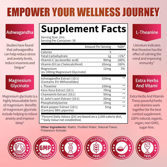 Cortisol Supplement Liquid Drops – 10-in-1 Hormone Balance Support for Women | Stress Relief, Mood & Sleep Support | Fast-Absorbing Cranberry Flavor, 2 FL.OZ