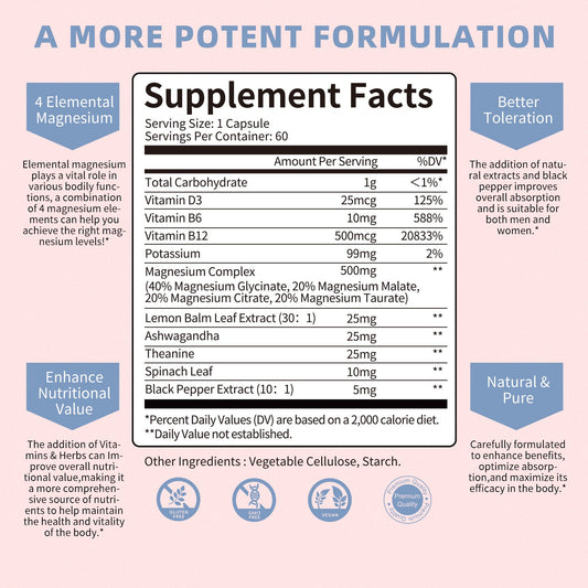 Magnesium Complex Supplement – 500mg with 4 Forms & Herbal Blend – 120 Capsules