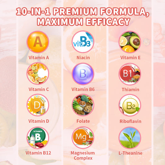 Magnesium Powder Supplement with Folate, L-Theanine, Vitamin A, C, D, E, B6 For Sleep Bone Mood Health, Stress Relief | Raspberry flavor, 4.23 Ounces