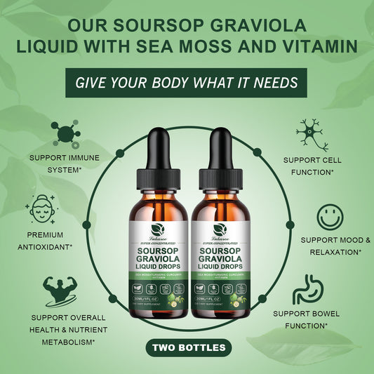 Soursop Graviola Extract Liquid Drop Plus Pure Botanical Sea Moss for Cell Support & Regeneration, Immunity, Liver, Sleep & Antioxidant - Soursop Bitters Liquid, 1 Fl Oz
