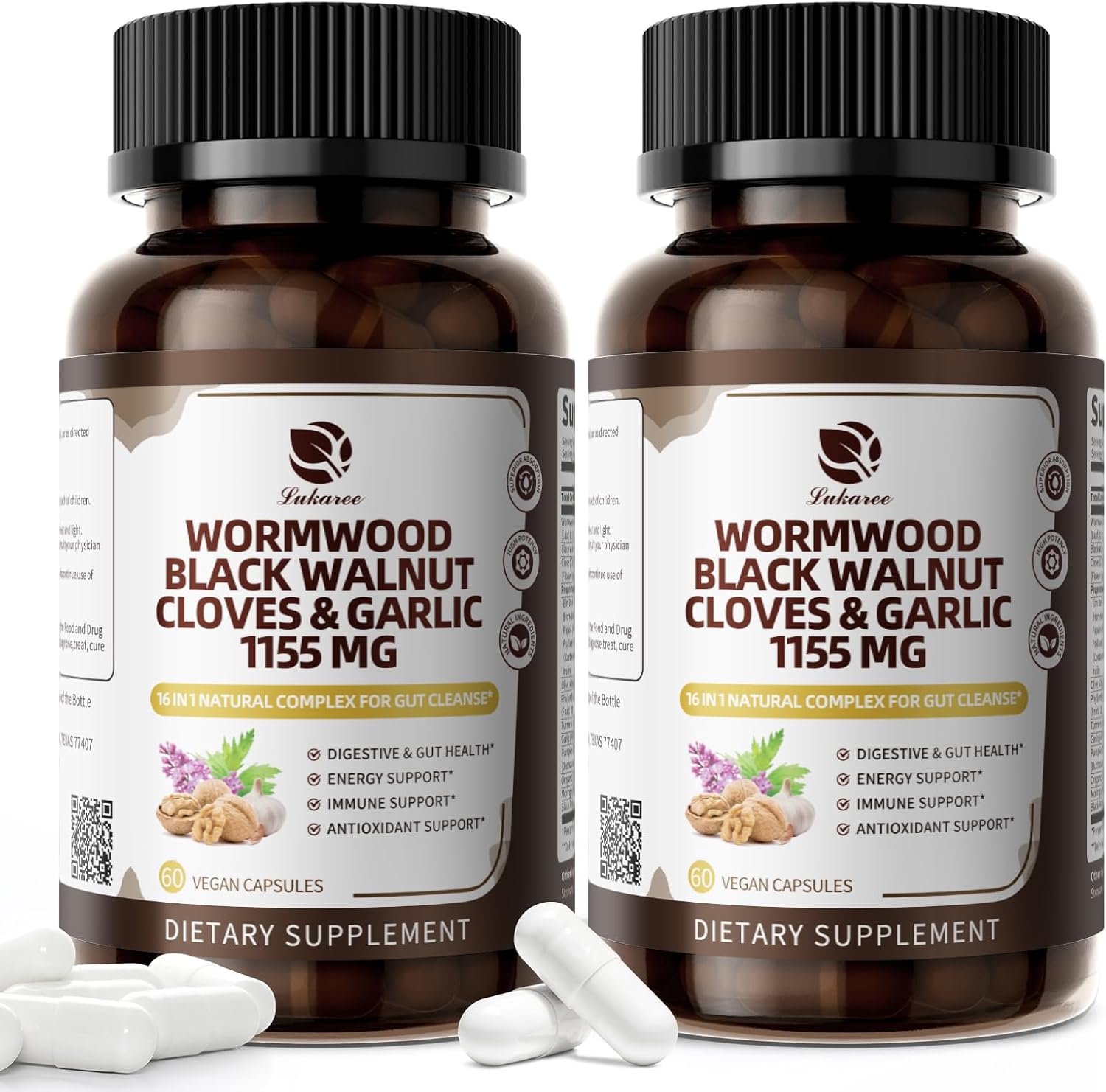 🌿 16-in-1 Wormwood & Black Walnut Capsules – 2 Bottles (120 Capsules)