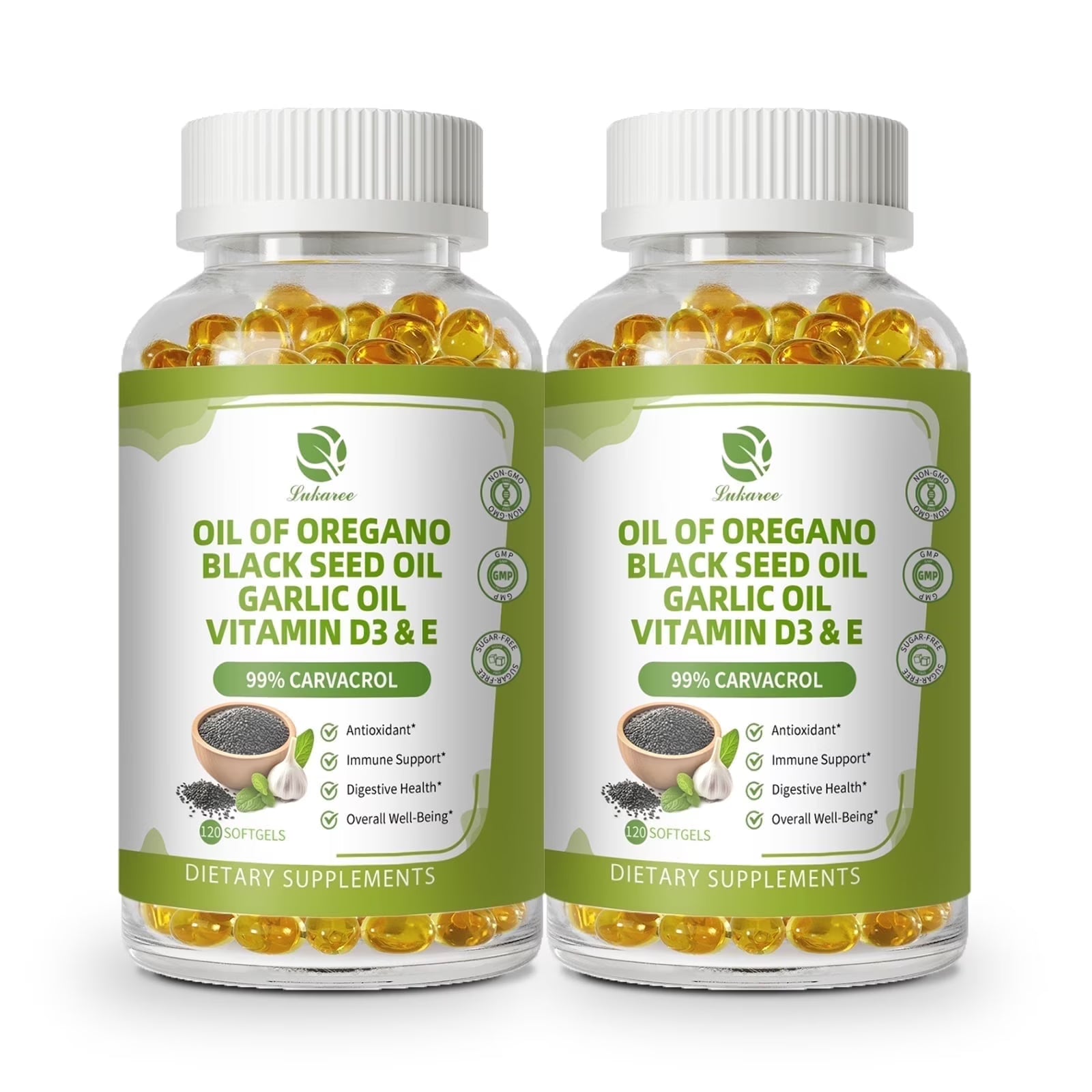 (2 Pack)Oregano Oil Softgels, Oil of Oregano with Black Seed Oil, Garlic Oil, Vitamin D3 E for Immune Digestive Support, Bone Health