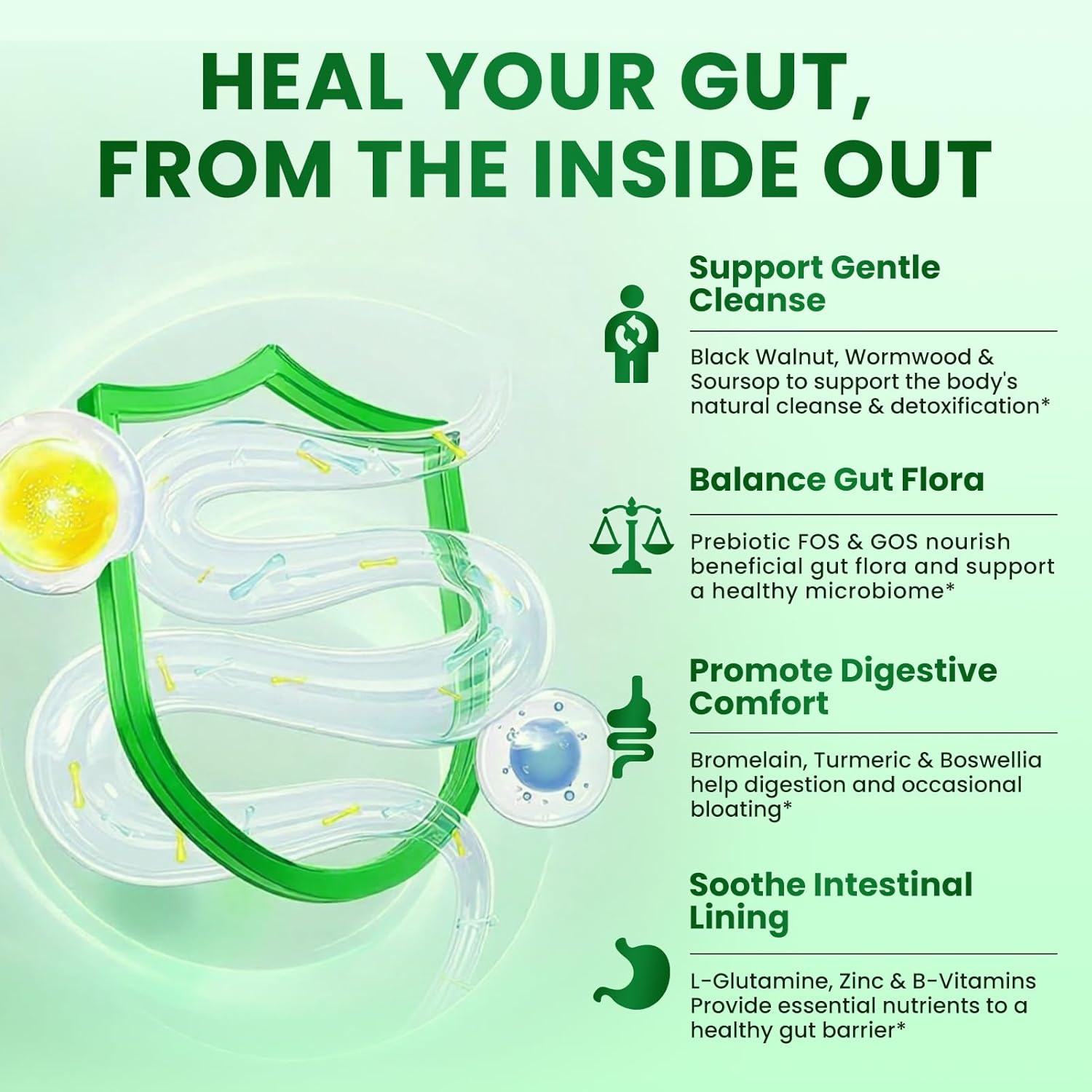 | L-Glutamine | Intestinal cell fuel | Strengthens gut lining* |
